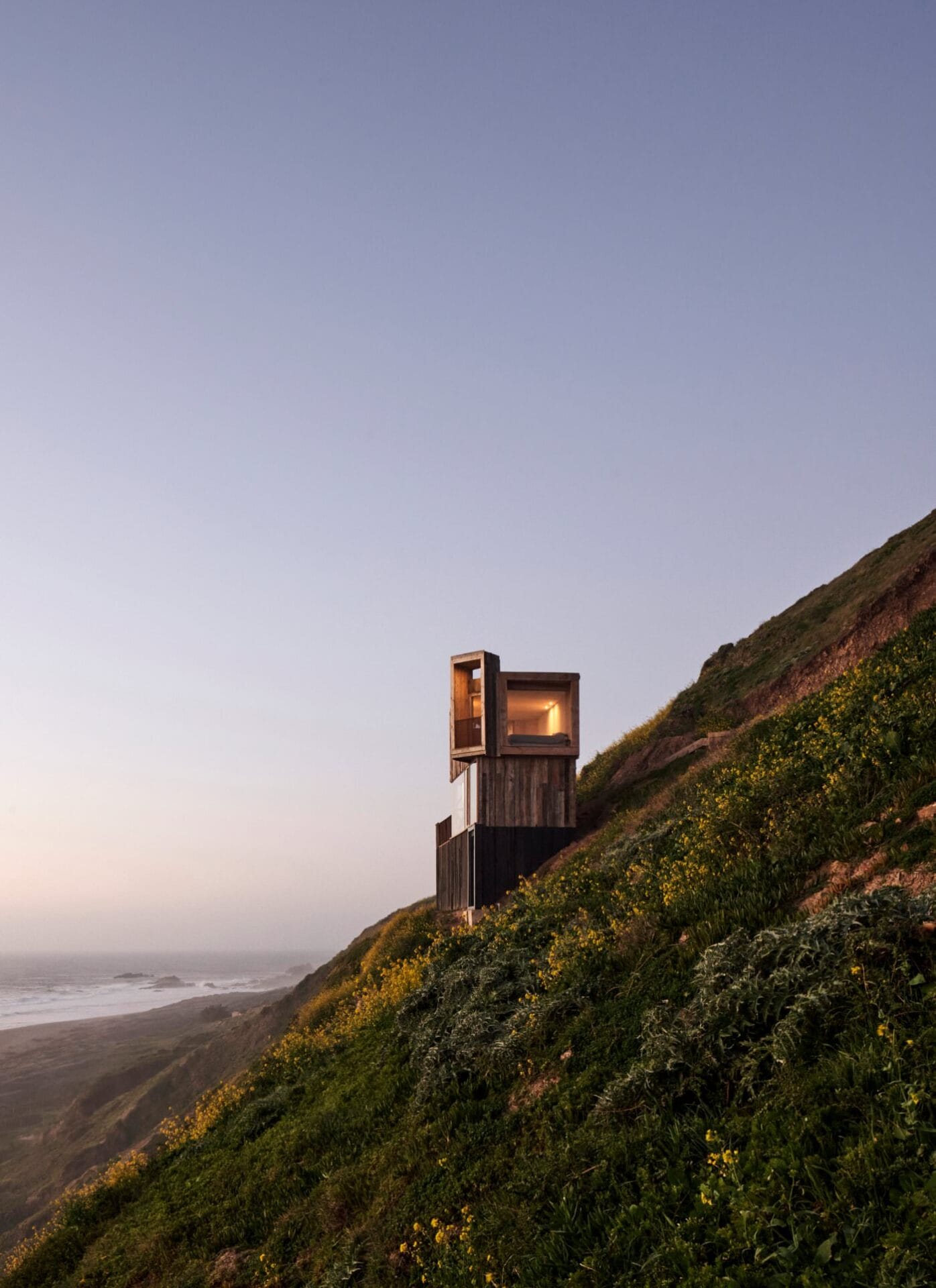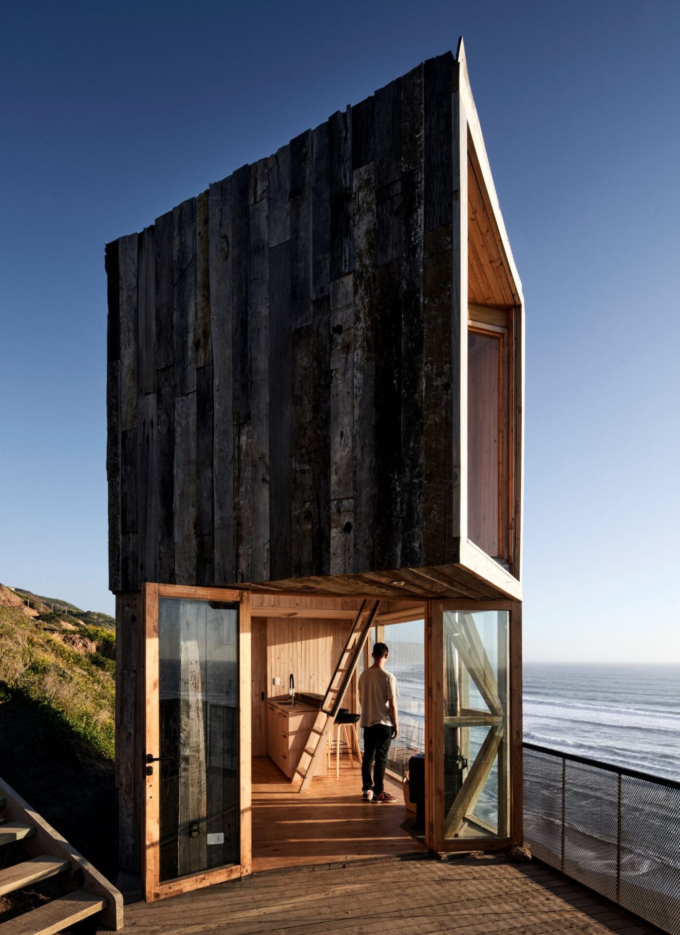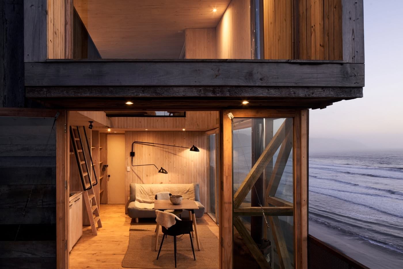 La Loica and La Tagua. The two minimalist cabins designed by Croxatto and Opazo Architects dominate the Pacific Ocean from a hill in Navidad, Chile.