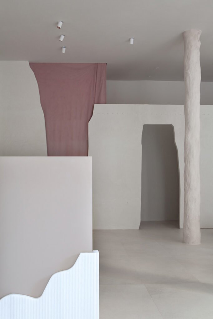 The new store concept design by Ciszak Dalmas Ferrari is a mixture of hard and soft elements, combining handmade curtains, irregular partitions, and unique columns. It want to pays homage to the contemporary feminine intimacy, delicacy and authenticity.