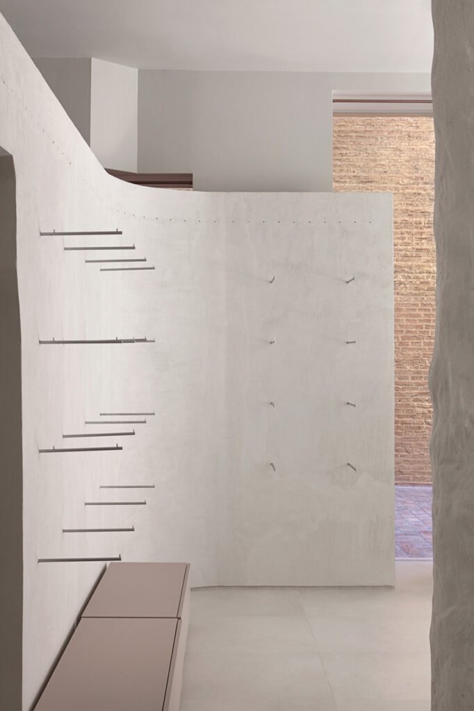 The customer feels surrounded in a harmonious space which integrates a sense of raw beauty while discovering the numerous collection of the brand through the displays until the dressing rooms.